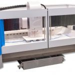 Designed for the machining of even ultra-thick slabs and blocks of marble, granite, natural and composite stone. It can carry out any type of rough or polished edge contouring, as well as milling, drilling, countersinking, recessing, emptying, bas-relief and engraving operations. It is the best-selling machining centre with workshops and represents the state-of-the-art in terms of 3-4 axes machining.